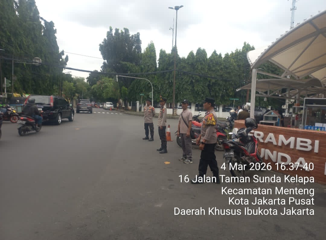Pengamanan dipimpin oleh Perwira Pengendali (Padal) Agung Sukiswo dengan perkuatan enam personel gabungan dari Polda Metro Jaya dan Polsek Metro Menteng. Sejak sore hari, personel telah disiagakan di sejumlah titik strategis di sekitar area masjid dan ruas jalan untuk mengantisipasi potensi gangguan kamtibmas, kepadatan arus lalu lintas, serta memastikan keselamatan pejalan kaki dan pengendara.