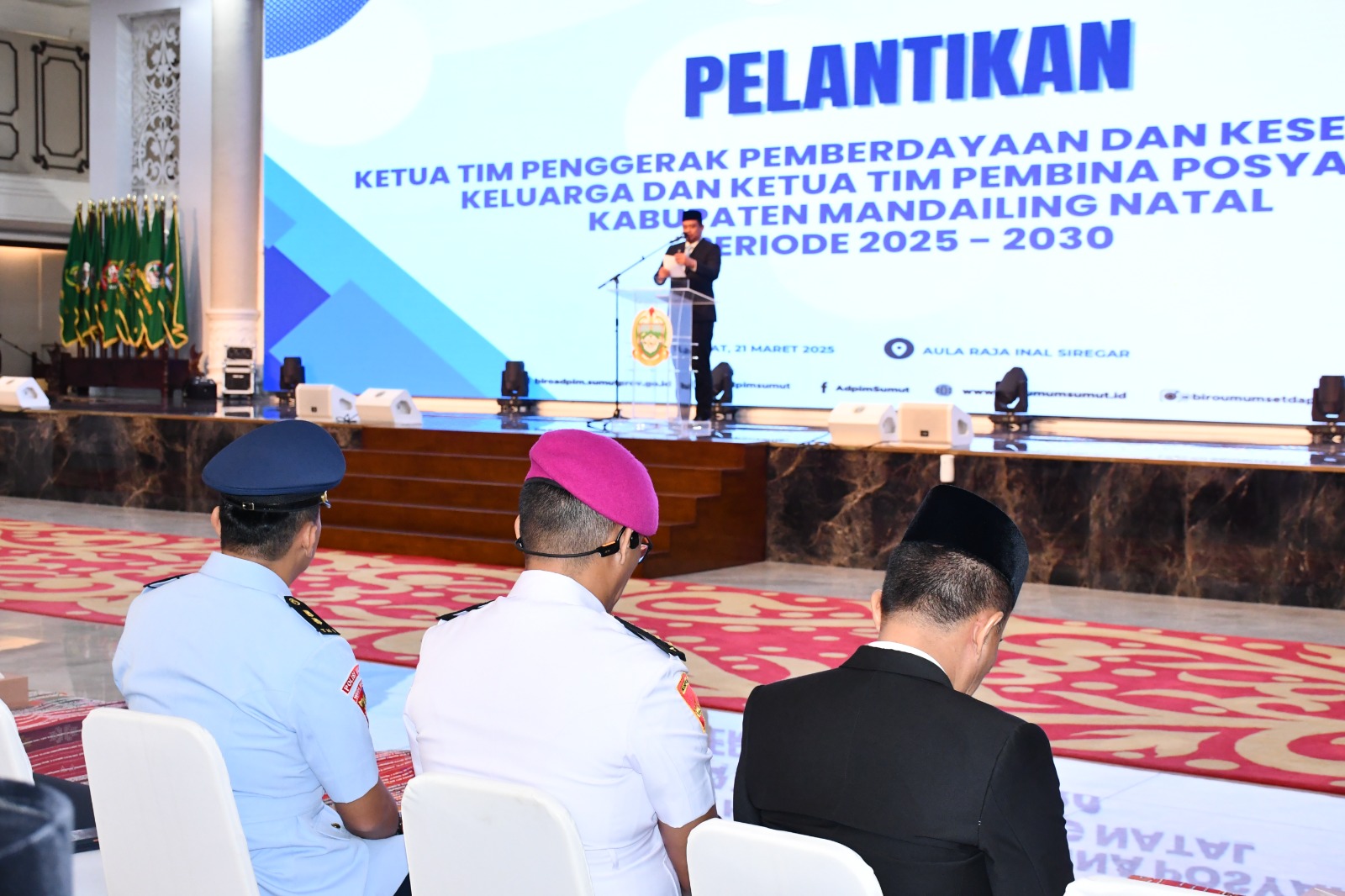 Turut hadir dalam acara ini, Ketua DPRD Sumut Erni Ariyanti, S.H., M.Kn., Wakil Gubernur Sumut Surya, B.Sc., Irdam I/BB Brigjen TNI Josafath M. Robert Duka, S.I.P., seluruh Kepala OPD Provinsi Sumatera Utara, seluruh Kepala OPD Kabupaten Mandailing Natal, dan tamu undangan lainnya.