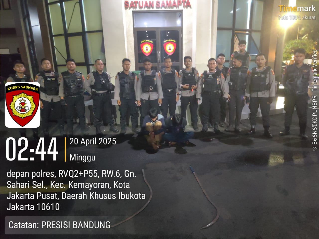 Indonesiakoma.com Jakarta Pusat – Dua remaja berinisial MJH (19) dan MRR (17) diamankan Tim Patroli Perintis Presisi Sat Samapta Polres Metro Jakarta Pusat, Minggu (20/4/2025) pukul 02.00 dini hari. Keduanya kedapatan membawa dua bilah celurit saat berkumpul di kawasan Jl. K.H. Mas Mansyur, Tanah Abang, Jakarta Pusat.
