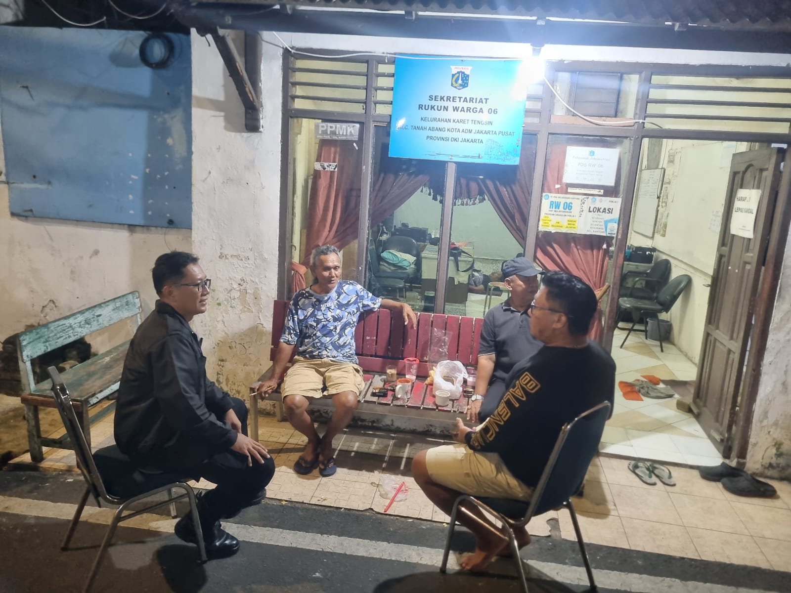 Indonesiakoma.com Jakarta Pusat – Dalam upaya menjaga keamanan dan ketertiban masyarakat (kamtibmas) di wilayah hukum Polsek Metro Tanah Abang, Bhabinkamtibmas Kelurahan Karet Tengsin Aiptu Suparmin melaksanakan kegiatan sambang dan cooling system Poskamling di Kantor Sekretariat RW 06, Jalan Karet Pasar Baru Barat I RT 04/06, Karet Tengsin, Tanah Abang, Jakarta Pusat, pada Sabtu (04/10/2025) malam hari.