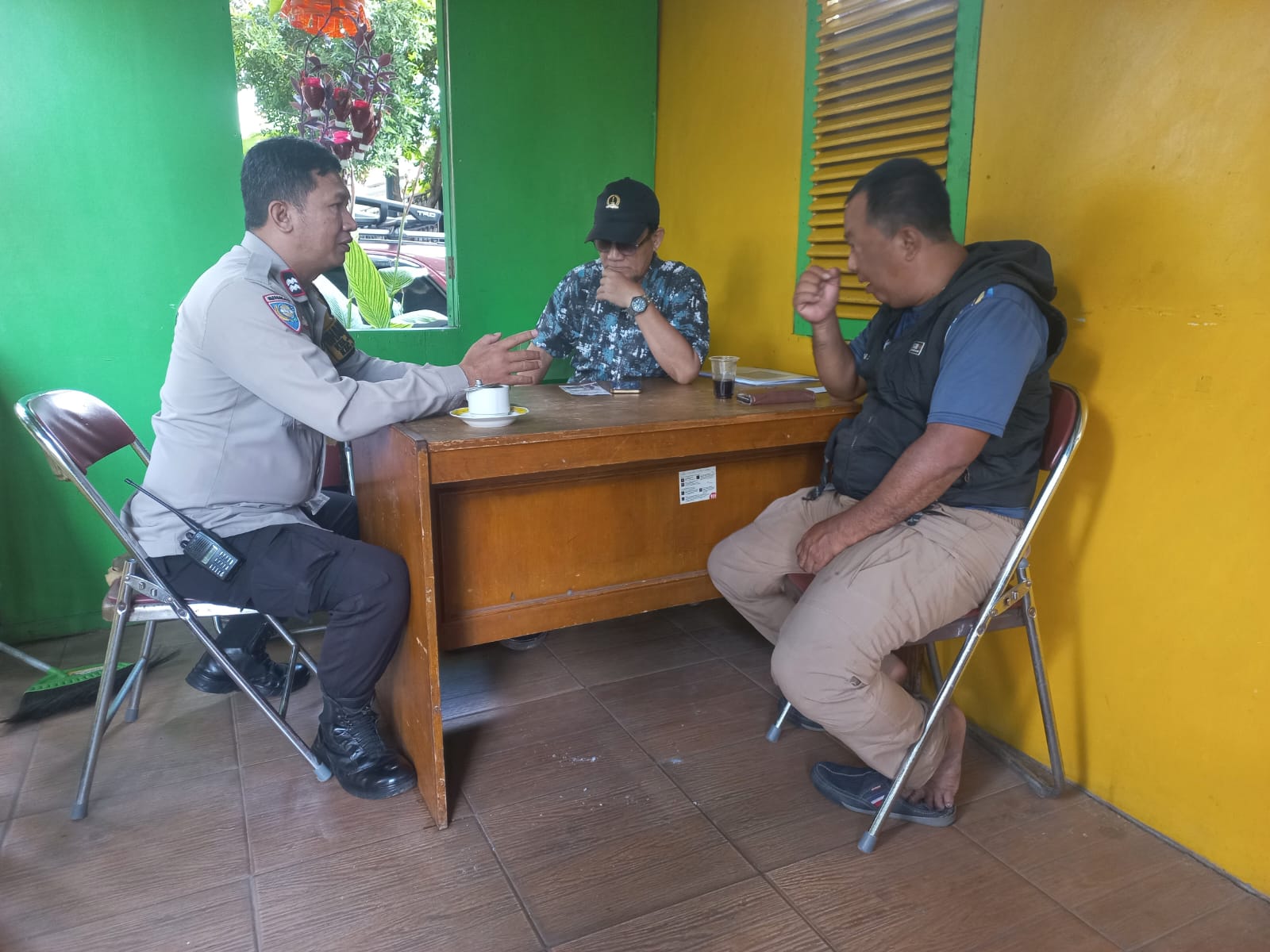 Aiptu Suhartono selaku Bhabinkamtibmas berbincang penuh hangat saling koordinasi dengan Bapak Ade Sudrajat selaku Ketua LMK untuk saling bertukar informasi tentang kamtibmas untuk membantu dan memonitoring wilayah agar tetap kondusif.