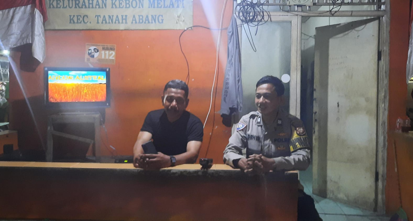 Indonesiakoma.com Jakarta Pusat – Dalam rangka mencegah kejahatan di kewilayahan khususnya malam hingga dini hari, Aiptu Deny Sukmo Prabowo Bhabinkamtibmas Kelurahan Kebon Melati melaksanakan patroli dialogis dan sambangi Poskamling RW 05 di Jalan Dukuh Pinggir I RW 05, Kelurahan Kebon Melati, Kecamatan Tanah Abang, Jakarta Pusat. Kamis (23/10/2025). malam.