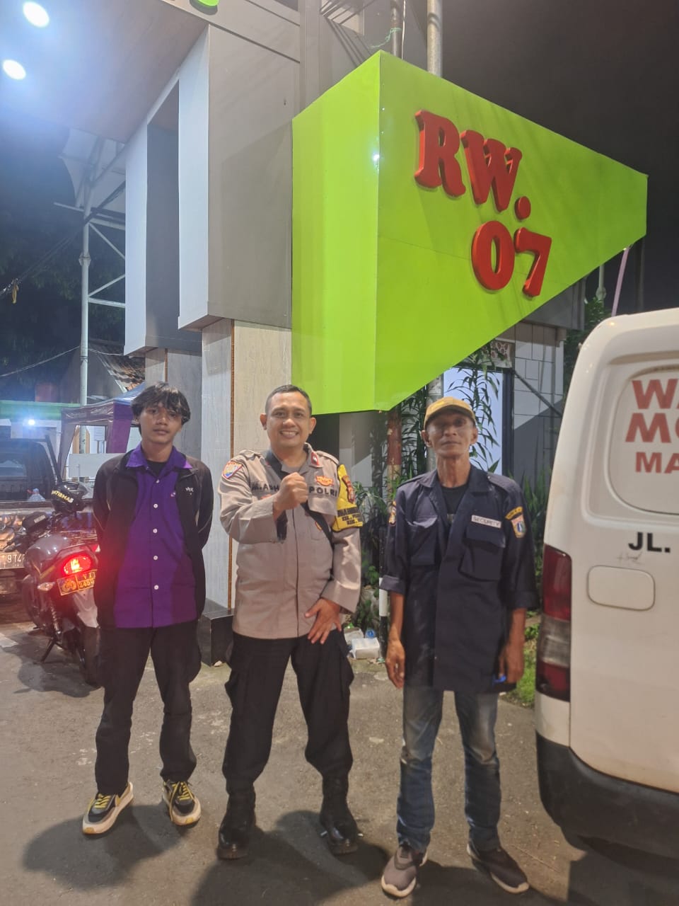 Kegiatan sambang yang dilakukan pada dinihari ini merupakan bagian dari tugas rutin Bhabinkamtibmas dalam memantau situasi lingkungan sekaligus mempererat hubungan antara kepolisian dan masyarakat. Dalam kesempatan tersebut, Aipda H.M. Adhy M.N. bertemu langsung dengan petugas keamanan lingkungan (Kamtib), Bapak Yoga dan Bapak Supri, yang sedang melaksanakan ronda malam di sekitar wilayah RT 03 RW 07.