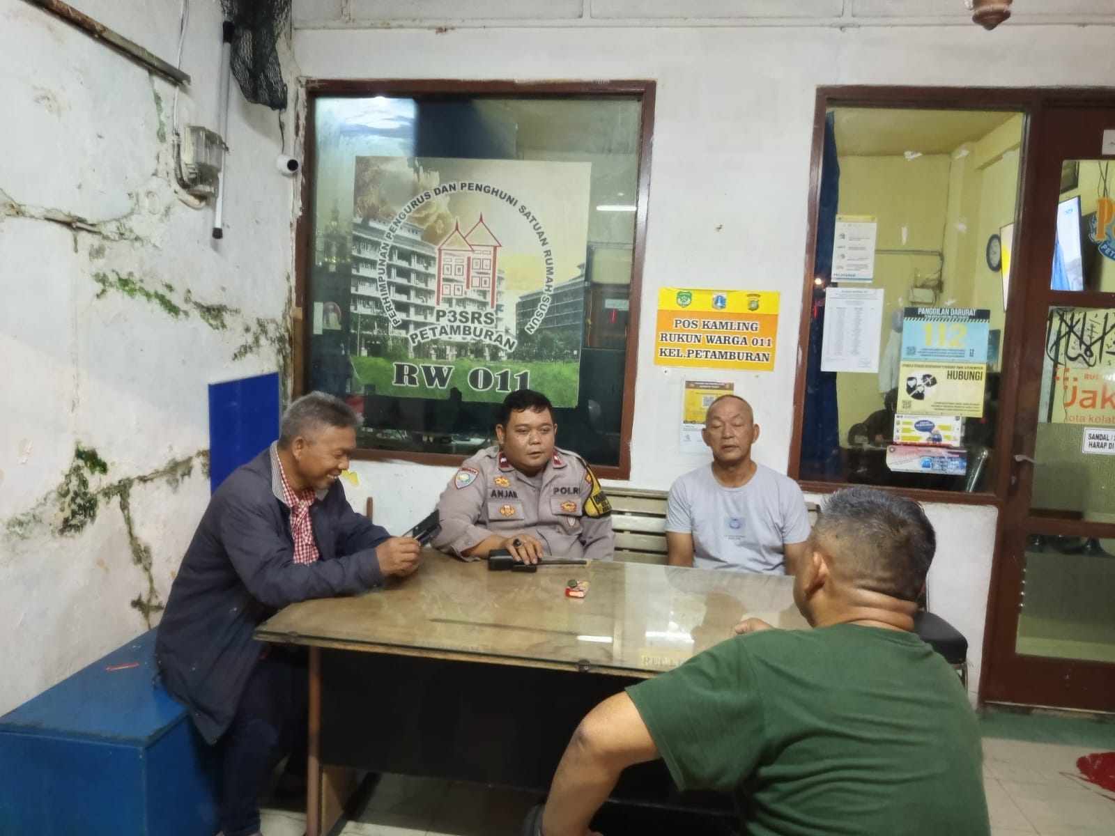 Indonesiakoma.com Jakarta Pusat – Petugas Bhabinkamtibmas Kelurahan Petamburan Aipda Ginanjar S.P melaksanakan sambang siskamling di Pos Kamling RW 11 Jalan Jati Petamburan RT 12/11, Petamburan, Tanah Abang, Jakarta Pusat, pada Kamis (23/10/2025) malam.