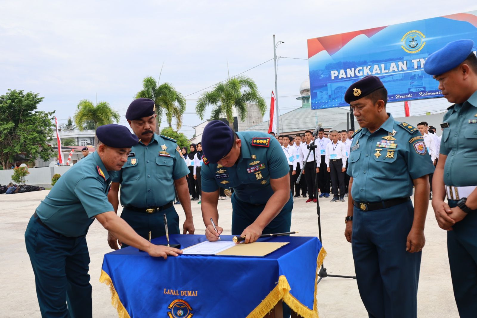 Indonesiakoma.com TNI AL, Dumai,- Bertempat di Mako Pangkalan TNI AL Dumai, Jalan Yos Soedarso No.1 Dumai Timur, Komandan Lanal Dumai Kolonel Laut (P) Boy Yopi Hamel didampingi Palaksa dan Paspotmar Lanal Dumai laksanakan penandatanganan Pakta Integritas dalam rangka seleksi penerimaan calon siswa Bintara/Tamtama Prajurit Karier Gelombang lI TA. 2024, Rabu (8/8/2024).