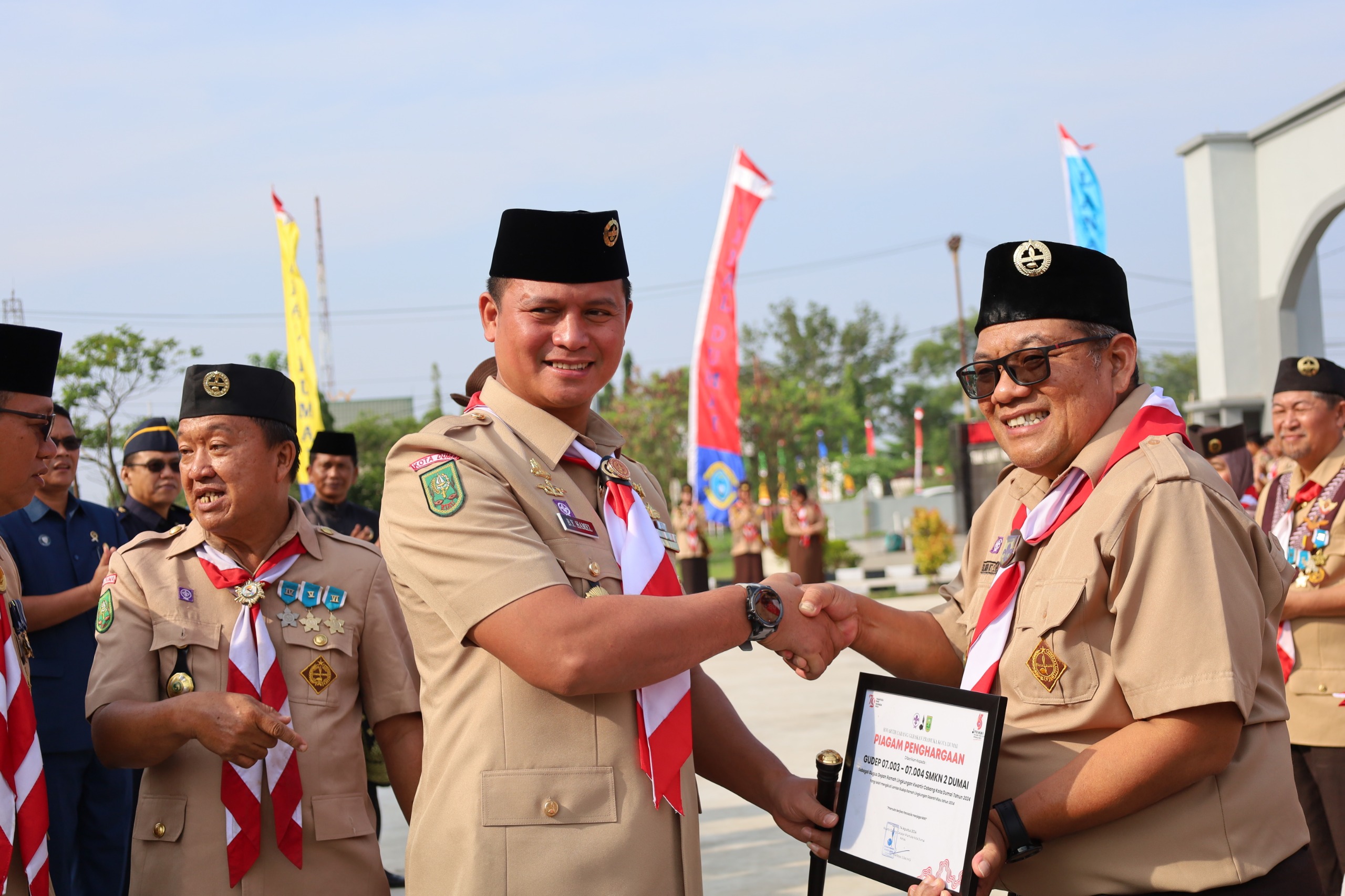 Indonesiakoma – TNI AL, Dumai,- Komandan Pangkalan TNI AL Dumai Kolonel Laut (P) Boy Yopi Hamel, selaku Ketua Kwartir Nasional Gerakan Pramuka Kota Dumai memimpin Apel Besar Hari Pramuka Ke-63 Tahun 2024 Tingkat Kwartir Kota Dumai yang dilaksanakan di Lapangan Apel Mako Lanal, Jalan Yos sudarso No. 1 Dumai, Rabu (14/8/2024).