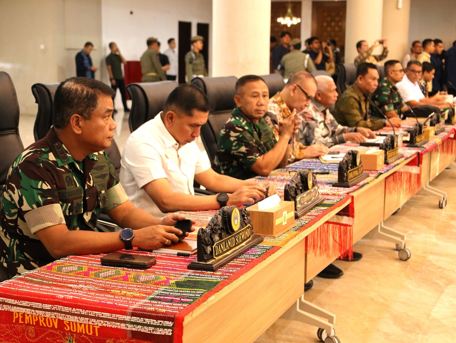 Rapat koordinasi ini dipimpin oleh Wakil Gubernur Sumut dan dihadiri oleh pimpinan TNI Polri Sumatera Utara, para Bupati dan Walikota, serta stake holder terkait.