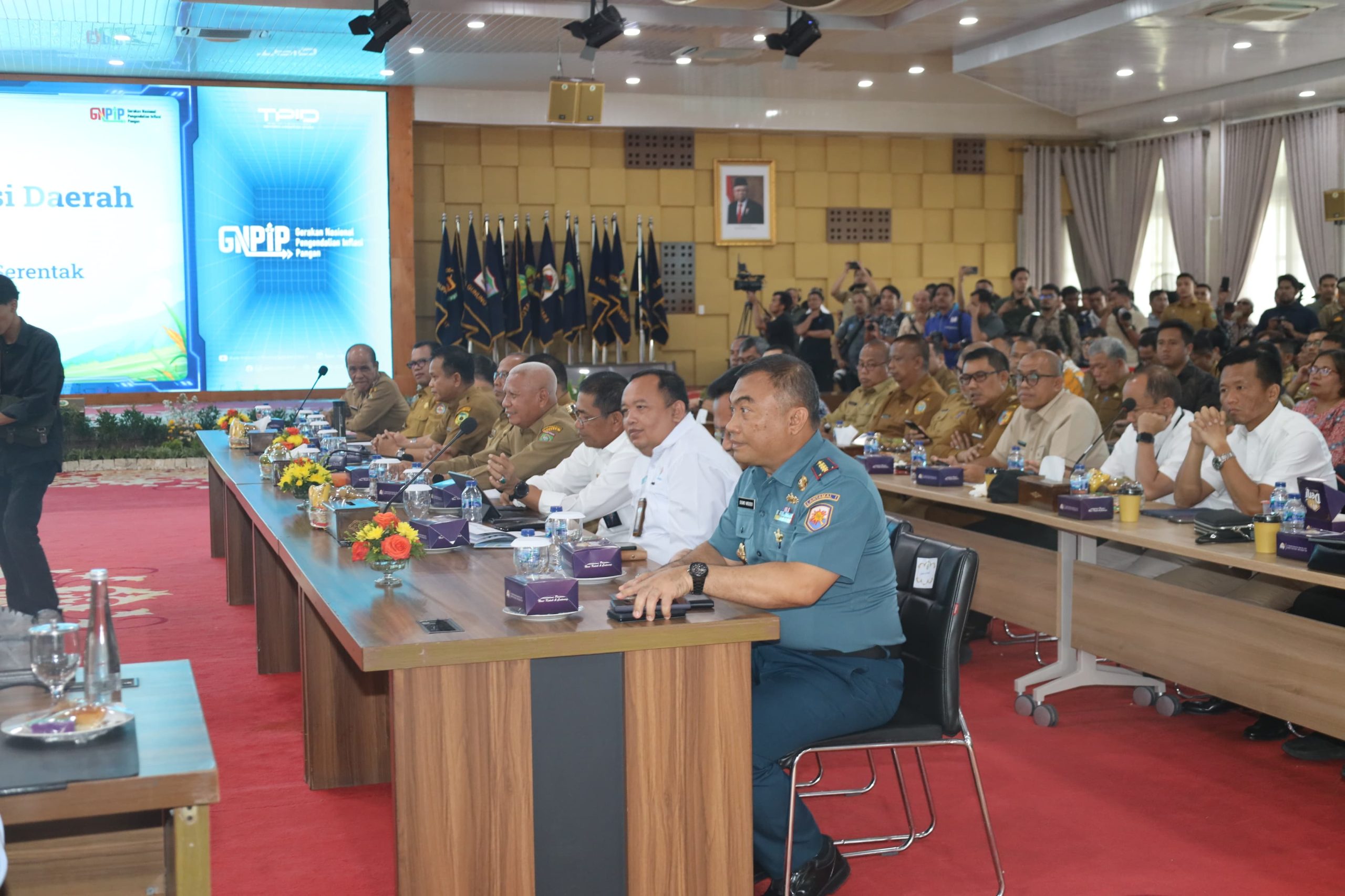 Indonesiakoma.com TNI AL, Belawan,- Komandan Pangkalan Utama TNI Angkatan Laut I (Danlantamal) I Brigjen TNI (Mar) Jasiman Purba, S.E., CHRMP., diwakili Wadan Lantamal I Kolonel Laut (P) Siswo Widodo, S.T., bersama Forum Koordinasi Pimpinan Daerah (Forkopimda) Provinsi Sumatera Utara, menghadiri Lounching Gerakan Penanganan Inflasi Serentak se-Sumatera Utara, dipimin Penjabat (Pj) Gubernur Sumatera Utara (Sumut) Agus Fatoni, bertempat di Aula Tengku Rizal Nurdin, Rumah Dinas Gubernur, Medan, Sumatera Utara, Selasa (23/7/2024).
