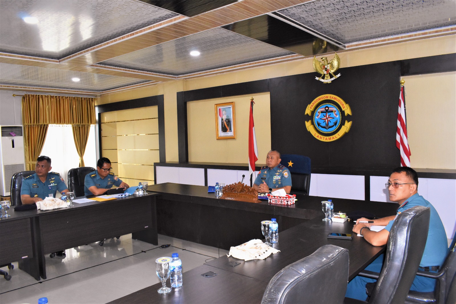 Indonesiakoma – TNI AL, Belawan,- Komandan Pangkalan Utama TNI Angkatan Laut I (Danlantamal) I Brigjen TNI (Mar) Jasiman Purba, S.E., CHRMP., mengikuti Forum Group Discussion (FGD) Integrated Maritime Surveillance System (IMSS) dengan keynote speech Kepala Staf Angkatan Laut (Kasal) Laksamana TNI Dr. Muhammad Ali, S.E., M.M., M.Tr. Opsla., melalui Video Conference (Vicon), bertempat di Gedung R. Mulyadi Mako Lantamal I, Jalan Serma Hanafiah No. 01 Belawan, Sumatera Utara, Senin (29 Juli 2024).