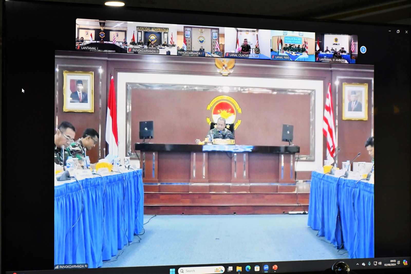 Indonesiakoma.com TNI AL, Belawan,- Komandan Pangkalan Utama TNI Angkatan Laut I (Danlantamal I) Brigjen TNI (Mar) Jasiman Purba, S.E., CHRMP., mengikuti pengarahan Pangkoaramada RI Laksamana Madya TNI Denih Hendrata, S.E., M.M., CHRMP., dalam rangka penerimaan prajurit TNI Angkatan Laut Tahun 2024 melalui Vicon, bertempat di Gedung R. Mulyadi Mako Lantamal I, Jalan Serma Hanafiah, No.01 Belawan, Sumatera Utara, Jum’at (02/8/2024).