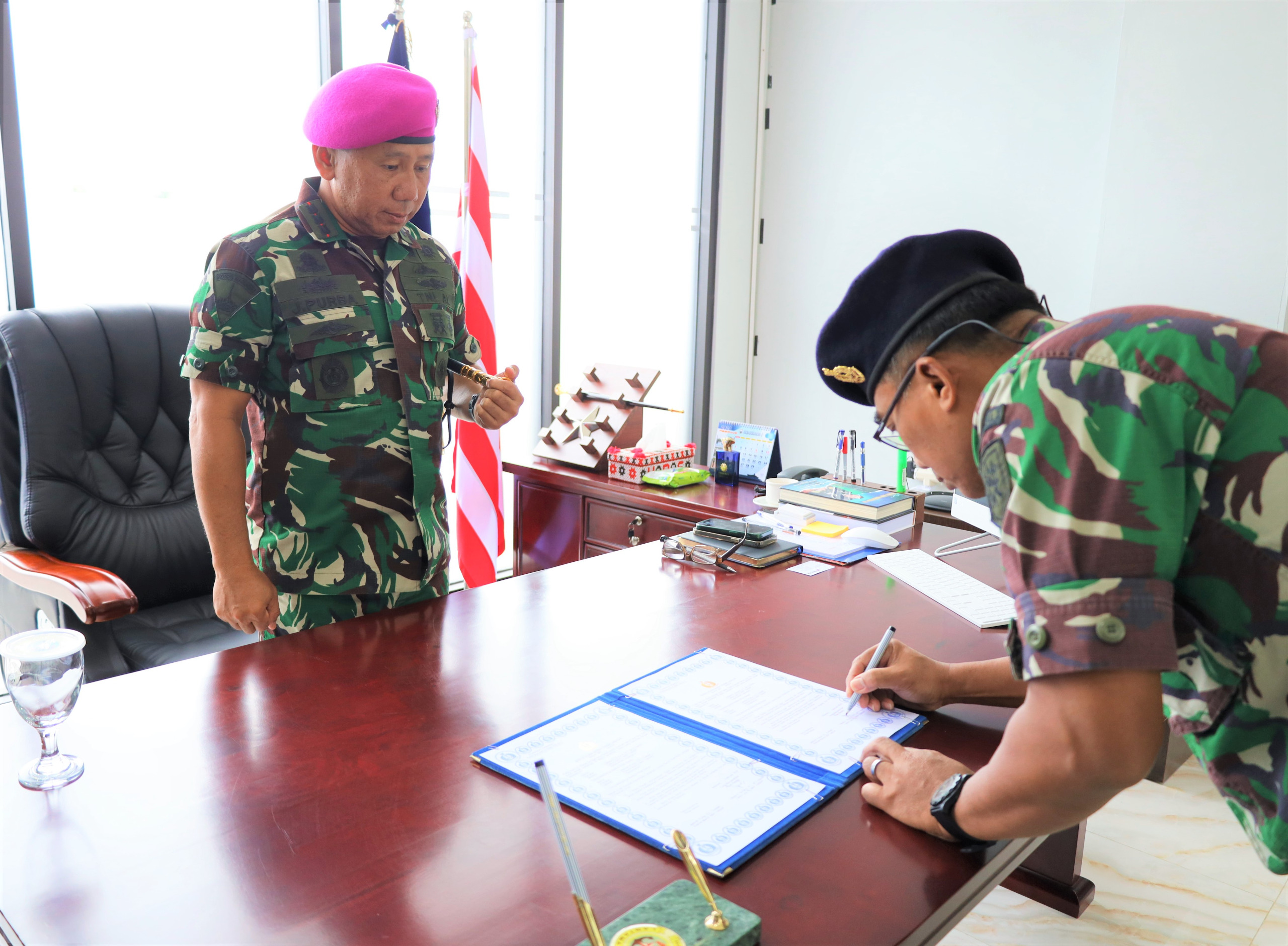 Indonesiakoma.com TNI AL, Belawan,- Komandan Pangkalan Utama TNI Angkatan Laut I (Danlantamal I) Kolonel Marinir Jasiman Purba, S.E., CHRMP., memimpin acara Serah Terima Jabatan Kadisharkan Lantamal I dari Letkol Laut (T) I Made Kurniawan kepada Komandan Lantamal I, bertempat di Ruang Kerja Komandan Lantamal I, Jalan Serma Hanafiah No. 01 Belawan, Sumatera Utara, Kamis (15/2/2024).