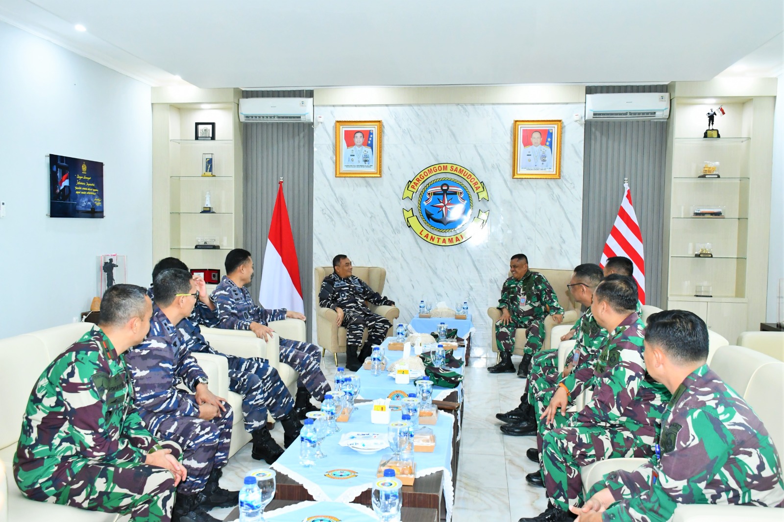 Indonesiakoma – TNI AL, Belawan,- Komandan Pangkalan Utama TNI Angkatan Laut I ( Danlantamal I ) Brigjen TNI (Mar) Jasiman Purba, S.E., CHRMP., diwakili Wadan Lantamal I Kolonel Laut (P) Siswo Widodo, S.T., menerima kunjungan Kepala Dinas Operasi Latihan TNI Angkatan Laut (Kadisopslatal) Laksma TNI I Gung Putu Alit Jaya, S.H., M.Si., diwakili Kasubdis Dukopslat Disopslatal Kolonel Mar Idha Mochamad Basri, S.E., M.M., beserta rombongan, bertempat di Ruang VIP Mako Lantamal I, Jalan Serma Hanafiah No.01, Belawan, Sumatera Utara, Jum’at (26/7/2024).