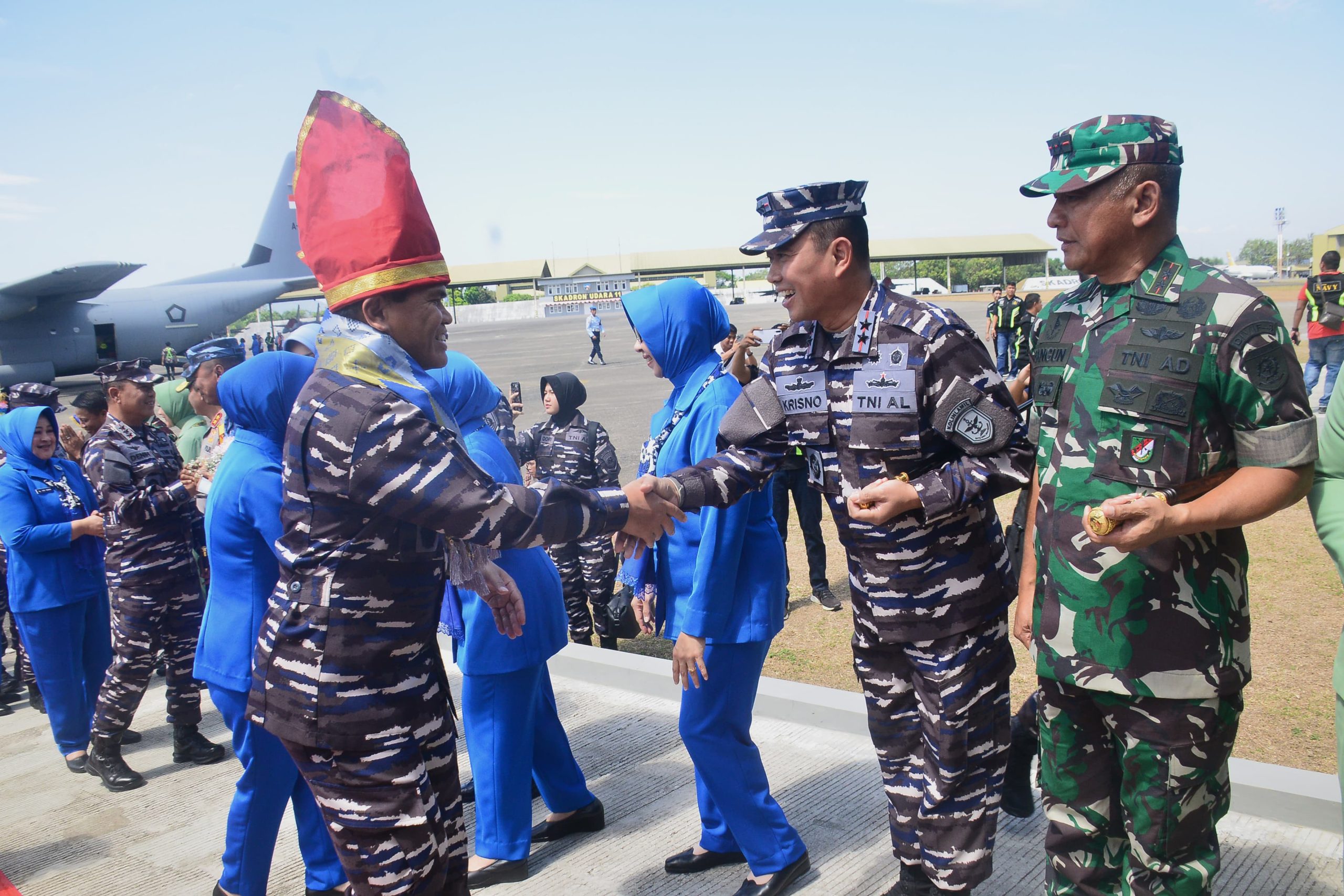 Kegiatan kunjungan kerja Kasal dan Ketua Umum Jalasenastri beserta rombongan diawali dengan penyambutan oleh Danlantamal VI dan Forkopimda Sulsel di Base Ops Lanud Hasanuddin Makassar.