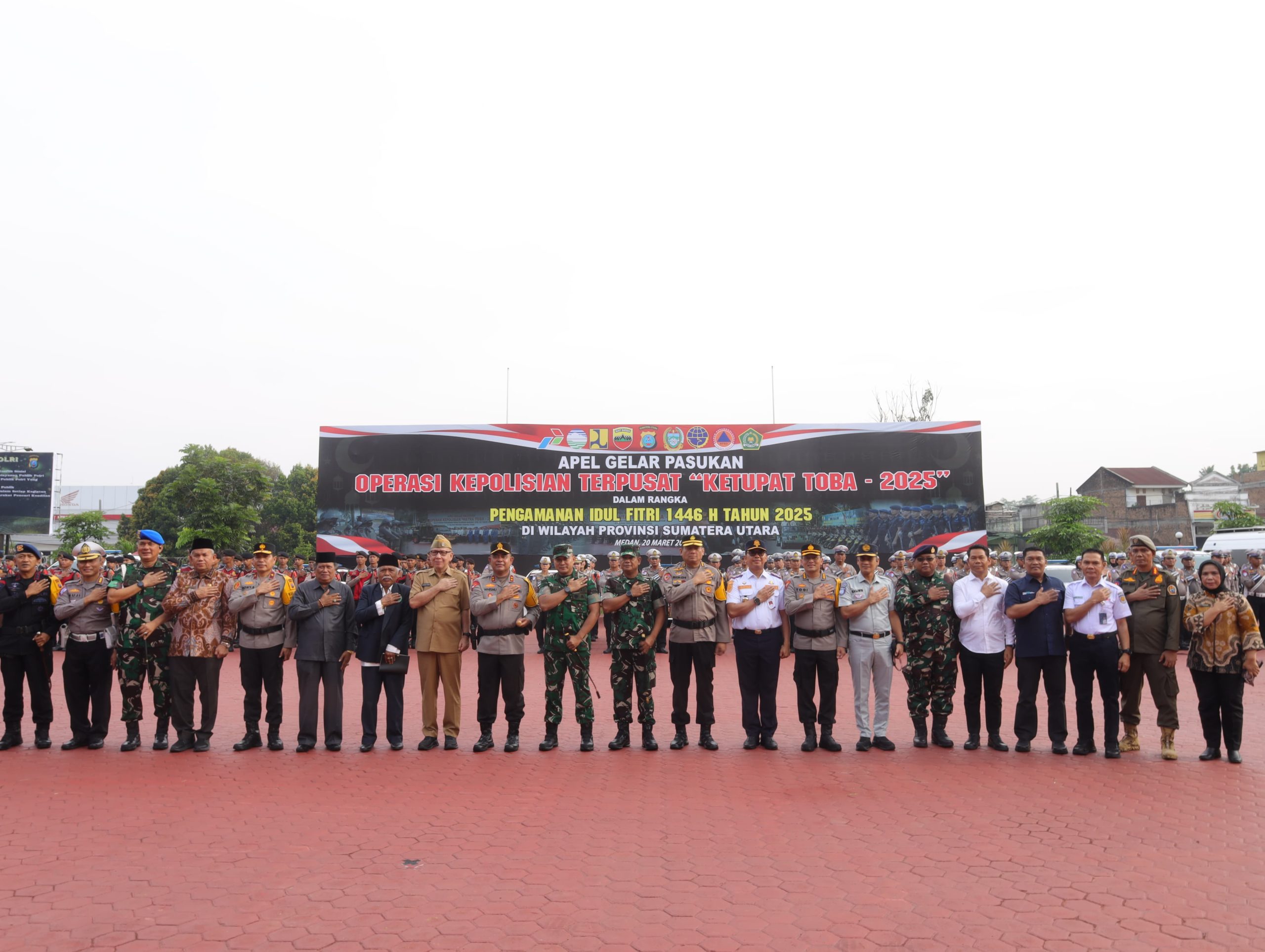 Apel Gelar Pasukan Operasi Kepolisian Terpusat Ketupat Toba- 2025 Sumut dalam rangka memastikan kesiapan pengamanan Idul Fitri 1446 H/2025 M di wilayah Provinsi Sumatera Utara yang dipimpin oleh Kapolda Sumut Irjen Pol Whisnu Hermawan Februanto, S.I.K., M.H.