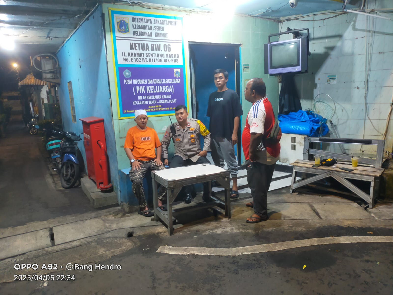Indonesiakoma.com Jakarta Pusat – Dalam upaya menjaga keamanan dan ketertiban masyarakat, Bhabinkamtibmas Kelurahan Kramat, Aiptu Endro Cahyono, melaksanakan patroli sambang di Pos Kamling RW 06, Kramat, Kecamatan Senen, Jakarta Pusat, pada Minggu (6/4/2025) dini hari.