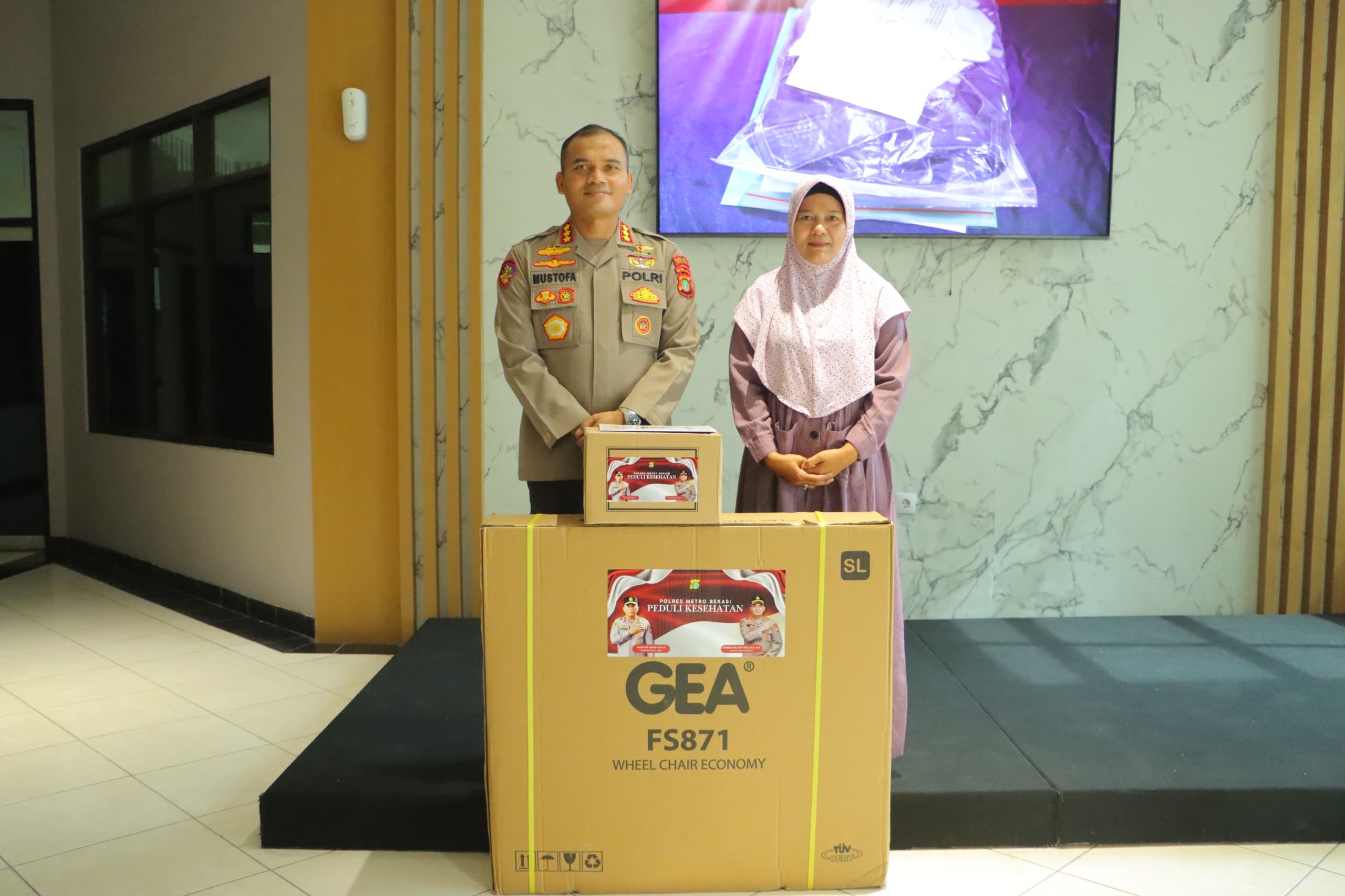 Indonesiakoma.com Bekasi – Sebagai wujud kepedulian terhadap masyarakat yang membutuhkan, Kapolres Metro Bekasi Kombes Pol Mustofa., menyerahkan bantuan kursi roda kepada warga lanjut usia yang mengalami gangguan kesehatan, Selasa (22/4/2025). Kegiatan berlangsung di Aula Lobby Utama Mako Polrestro Bekasi.