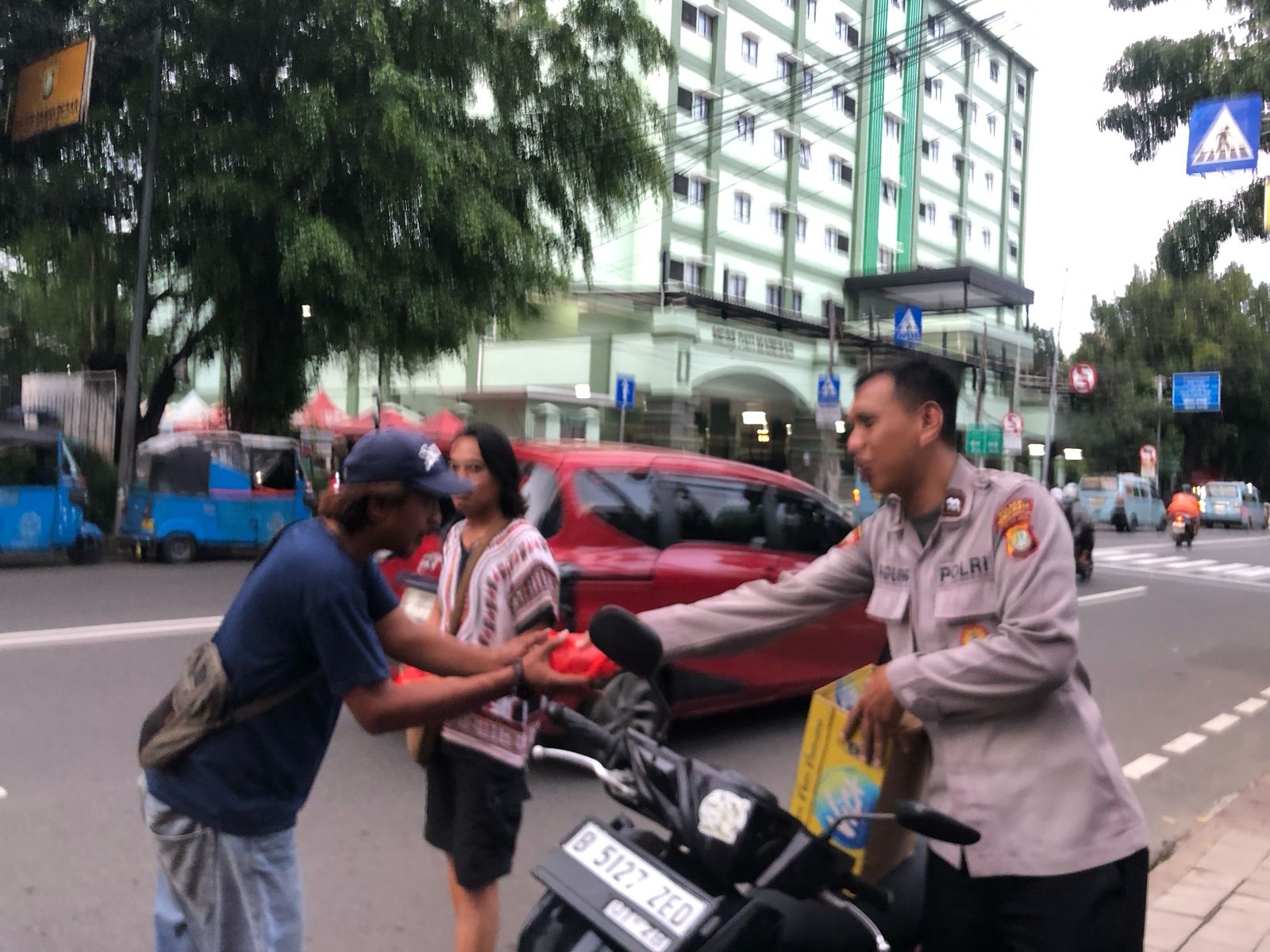 Kasium Polsek Sawah Besar Pimpin Aksi Turun Ke Jalan Raya Bagikan Takjil untuk Pengguna Jalan