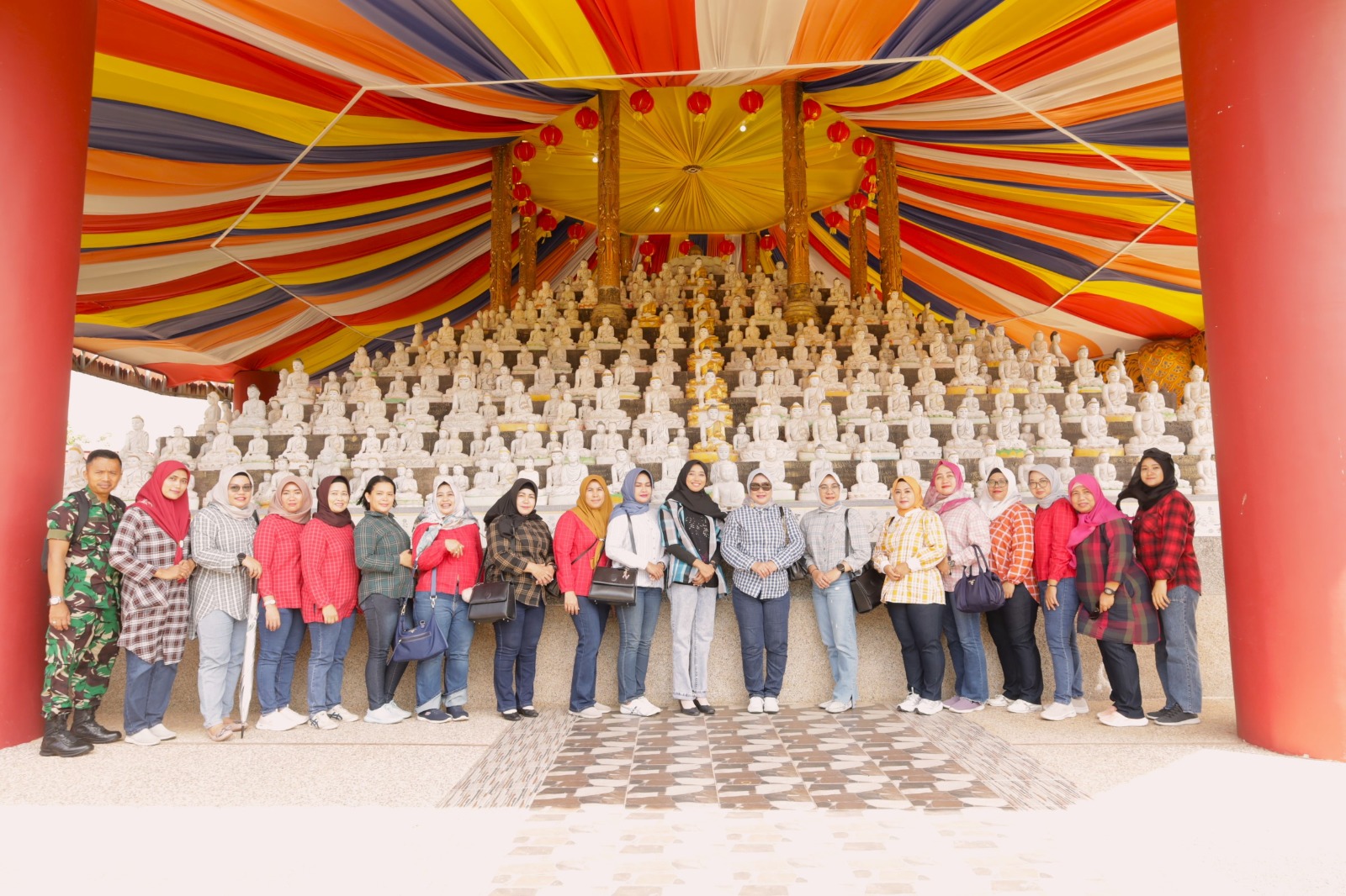 Indonesiakoma – TNI AL, Bintan,- Ketua Cabang 5 Korcab IV DJA I Ny. Erni Eko Agus Susanto mendampingi Ketua Korcab IV DJA I Ny. Erni Tjatur Soniarto bersama pengurus melaksanakan kunjungan budaya ke Vihara Budha Darma Galang Batang Gunung Kijang, Bintan, Jum’at (19/07/2024).