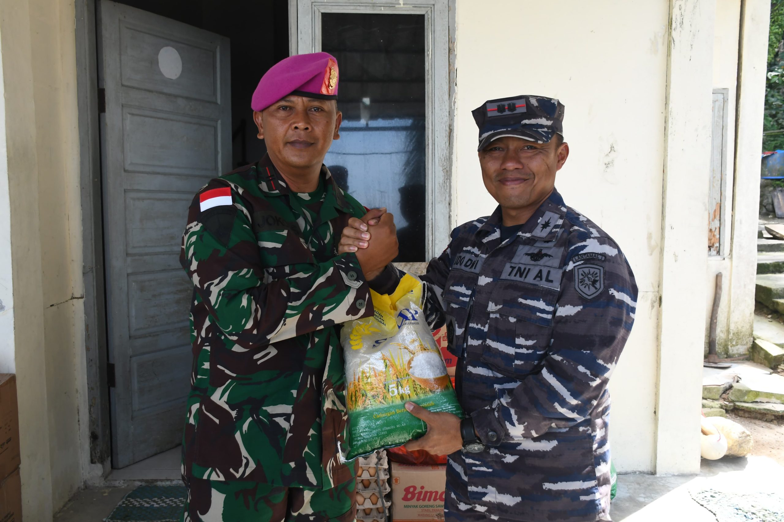 Usai berikan motivasi kepada seluruh personel Satgas, Danlanal TBA memberikan paket sembako dan diterima langsung oleh Kolak Ops I Pos Pulau Berhala Lettu Mar Joko Santoso.