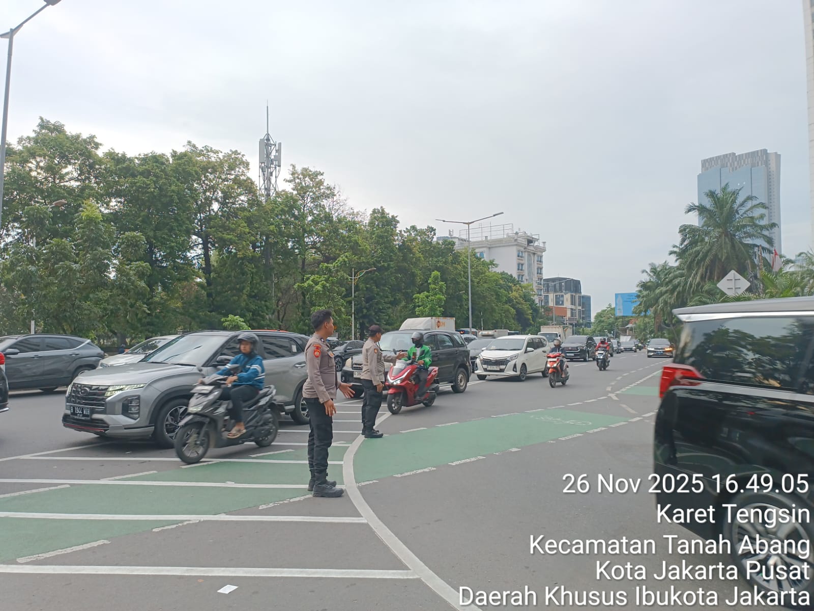 Indonesiakoma.com Jakarta Pusat — Pada sore hari Rabu, (26/11/2025) arus lalu lintas di pertigaan Karet tampak padat oleh kendaraan yang melintas dari arah Tanah Abang menuju Kuningan. Petugas kepolisian Polsek Metro Tanah Abang terlihat sigap melakukan pengaturan lalu lintas (gatur lalin) guna mencegah terjadinya kemacetan di Pertigaan Karet, Kelurahan Karet Tengsin, Kecamatan Tanah Abang, Jakarta Pusat.