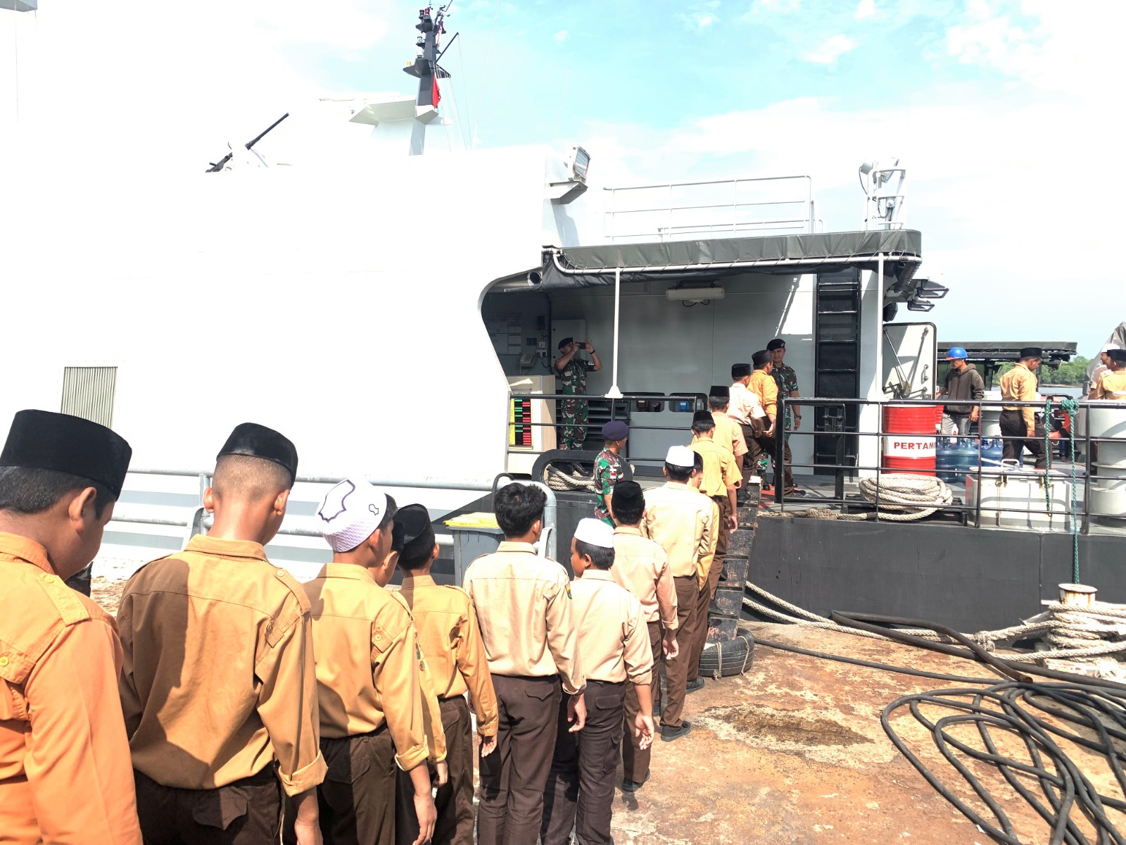 Kunjungan tersebut diikuti 96 orang Santri Putra dan Putri, serta 18 orang Ustadz dan Ustadzah dan disambut baik oleh Komandan KRI Tuna-876 Letkol Laut (P) Arif, S.T., M.T., M.Tr. Opsla., beserta ABK KRI.