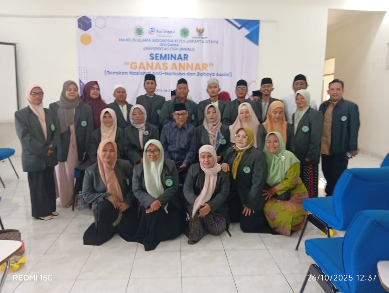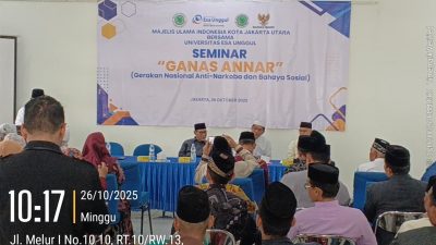 INDONESIAKOMA.COM, JAKARTA UTARA, 26 OKTOBER 2025 — Majelis Ulama Indonesia (MUI) Kota Jakarta Utara menunjukkan komitmen seriusnya dalam pencegahan narkoba dengan menggelar Seminar Nasional bertema “GANAS ANNAR” (Gerakan Nasional Anti-Narkoba dan Bahaya Sosial). Acara penting ini diadakan pada Ahad (26/10) di Kantor MUI Jakarta Utara.