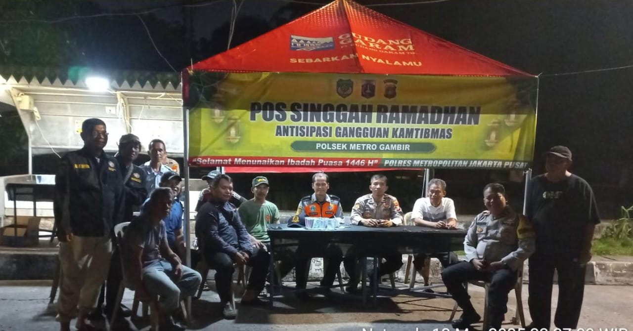 Indonesiakoma.com Jakarta Pusat – Dalam rangka menjaga keamanan dan ketertiban masyarakat selama bulan suci Ramadhan, Polsek Metro Gambir menggelar kegiatan pengamanan di Pos Singgah Ramadhan Roxy, Kelurahan Duripulo, Kecamatan Gambir, Jakarta Pusat, pada Kamis, 13 Maret 2025. Pengamanan ini melibatkan berbagai unsur, mulai dari kepolisian, ASN kecamatan, hingga tokoh masyarakat.