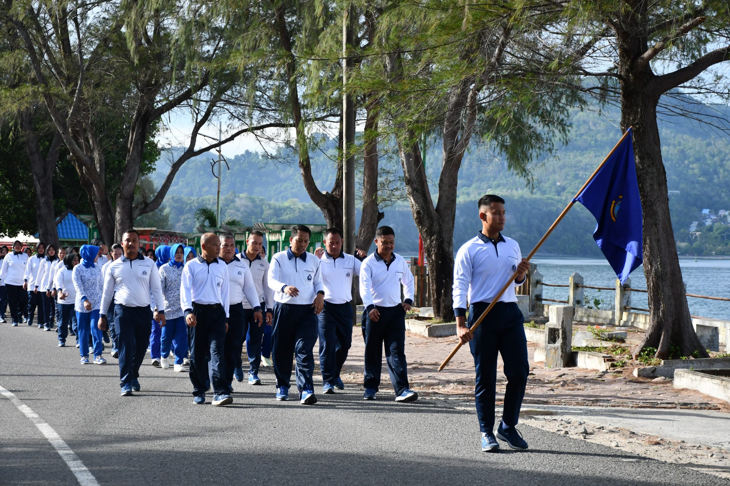 Indonesiakoma – TNI AL, Sabang,- Komandan Lanal Sabang (Danlanal Sabang) Kolonel Laut (P) Gita Muharam, M.Sc., beserta Ketua Jalasenastri Cabang 3 Korcab I DJA I Ny.Tika Gita Muharam mengajak Prajurit, PNS, dan PPPK Lanal Sabang olahraga dan makan lesehan bersama, bertempat di Dermaga Lanal Sabang, Jalan Sabang Fair, Kuta Barat, Kecamatan Sukakarya,Kota Sabang, Selasa (13/08/2024).