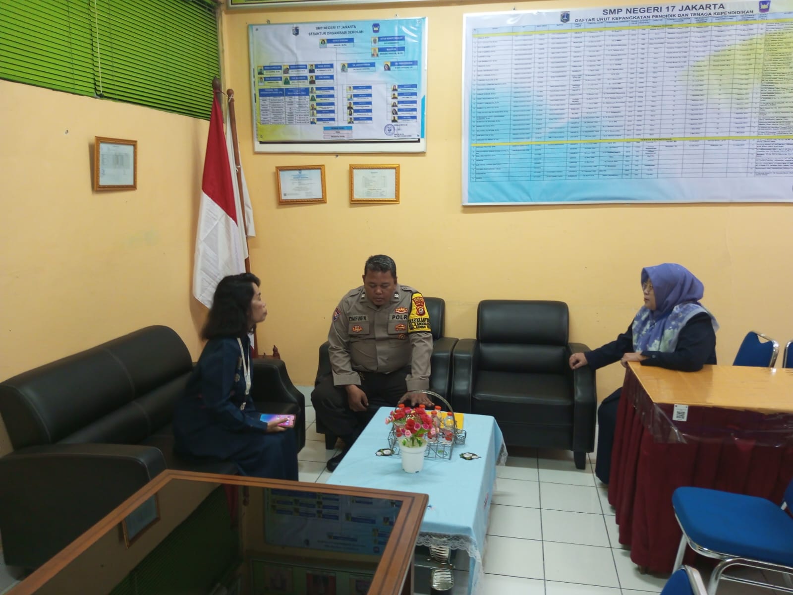 Dalam sambangnya, Aiptu Syaifudin berkoordinasi dengan pihak sekolah, yakni Kepala SMPN 17 Ibu Analis dan Kepala SMPN 64 Bapak Kuswara. Ia menyampaikan pesan kamtibmas agar para siswa tetap fokus belajar, tidak mudah percaya isu di media sosial, serta menghindari ajakan unjuk rasa yang berisiko menimbulkan gangguan keamanan.