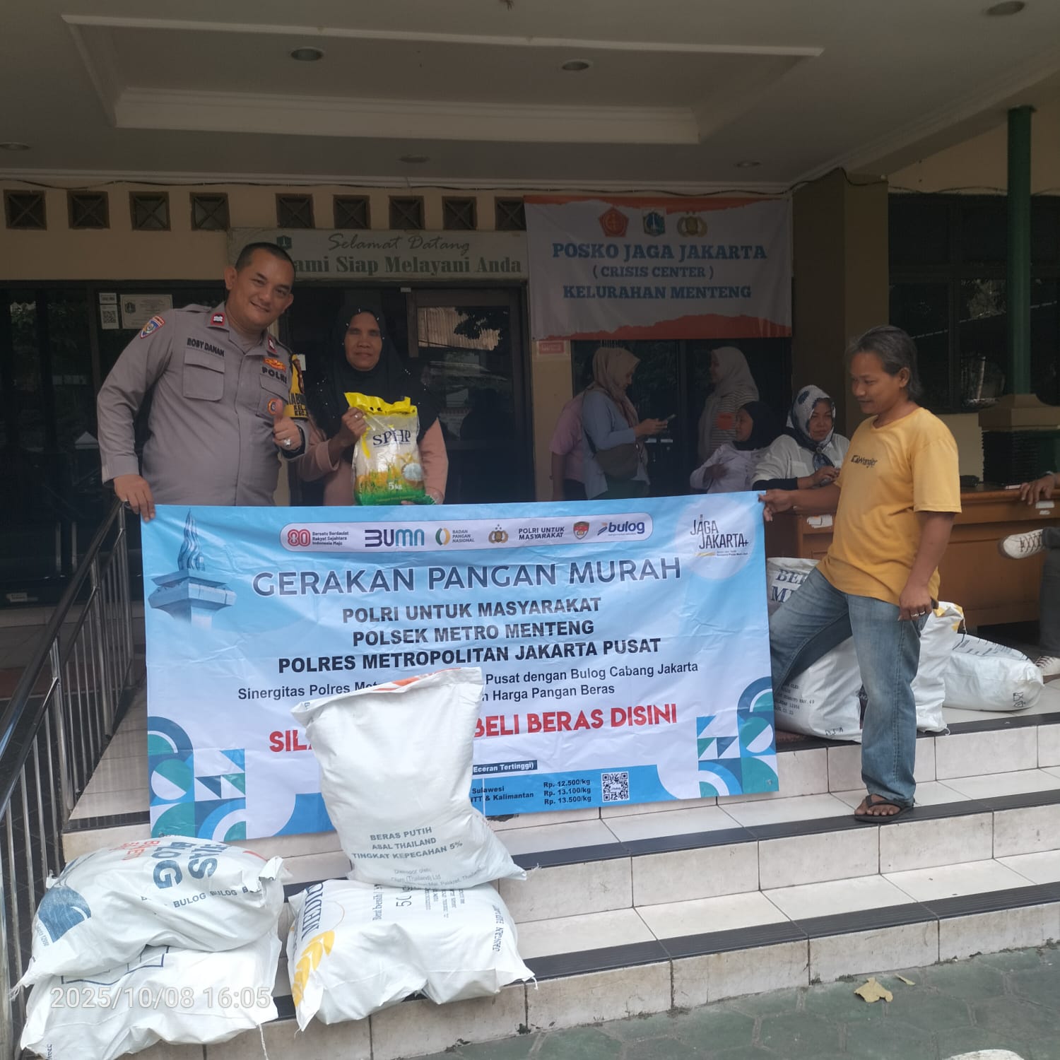 Kegiatan sosial ini dipimpin oleh Bhabinkamtibmas Kelurahan Menteng Aiptu Robby Danan Jaya, dengan menyediakan beras Bulog kemasan 5 kilogram seharga Rp55.000 per paket. Program ini disambut antusias oleh warga yang datang sejak pagi untuk memperoleh bahan pokok dengan harga lebih murah dibanding harga pasar.