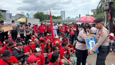Dalam kegiatan tersebut, Aiptu Suyanto, Bhabinkamtibmas Kelurahan Cideng dari Polsek Metro Gambir, diterjunkan untuk melakukan pengamanan dan pemantauan langsung di lokasi. Kehadirannya menjadi bagian dari langkah preventif agar penyampaian aspirasi masyarakat berjalan aman, tertib, dan sesuai ketentuan hukum yang berlaku.