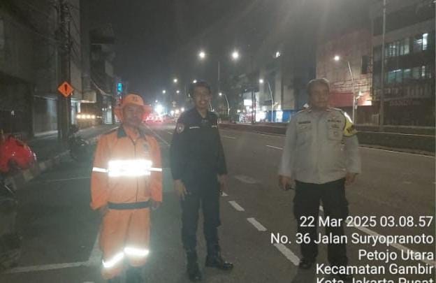 Patroli ini dipimpin oleh Aiptu Yansen dengan dukungan lima personel gabungan yang terdiri dari dua anggota kepolisian, dua petugas PPSU, dan satu anggota Pokdarkamtibmas. Tim menyusuri sejumlah titik yang menjadi fokus pengamanan, di antaranya Jl. Suryopranoto, Jl. Kesehatan Raya, dan Jl. Jati Baru Raya, yang berbatasan langsung dengan wilayah Tabang Kampung Bali.