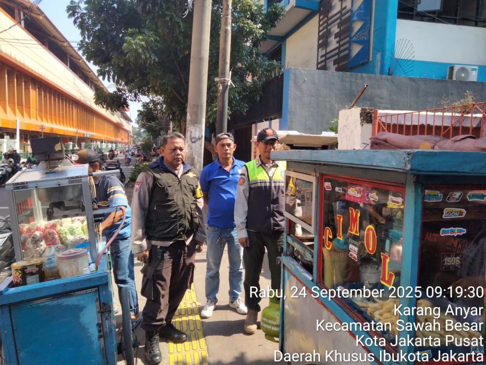 Indonesiakoma.com Jakarta Pusat — Dalam rangka penataan kawasan dan penegakan Peraturan Daerah, Polsek Sawah Besar melalui Bhabinkamtibmas Karang Anyar Aiptu Saepudin, melaksanakan kegiatan “Rabu Tertib” dengan menyasar para pedagang kaki lima (PKL) yang masih berjualan di atas trotoar dan bahu jalan di sepanjang Jalan Karang Anyar Raya, Kelurahan Karang Anyar, Kecamatan Sawah Besar, Jakarta Pusat.