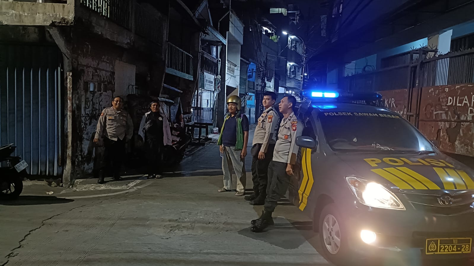 Patroli berlangsung sekitar pukul 01.00 WIB di kawasan Jl. Gotong Royong, Kelurahan Kartini, Sawah Besar, Jakarta Pusat. Petugas segera melakukan pengecekan terhadap kerumunan remaja yang diduga hendak melakukan tawuran antarwarga. Berkat kehadiran cepat personel Polsek Sawah Besar, potensi bentrokan berhasil dicegah. Polisi kemudian memberikan imbauan tegas kepada para remaja untuk segera membubarkan diri dan tidak melakukan tindakan melanggar hukum.