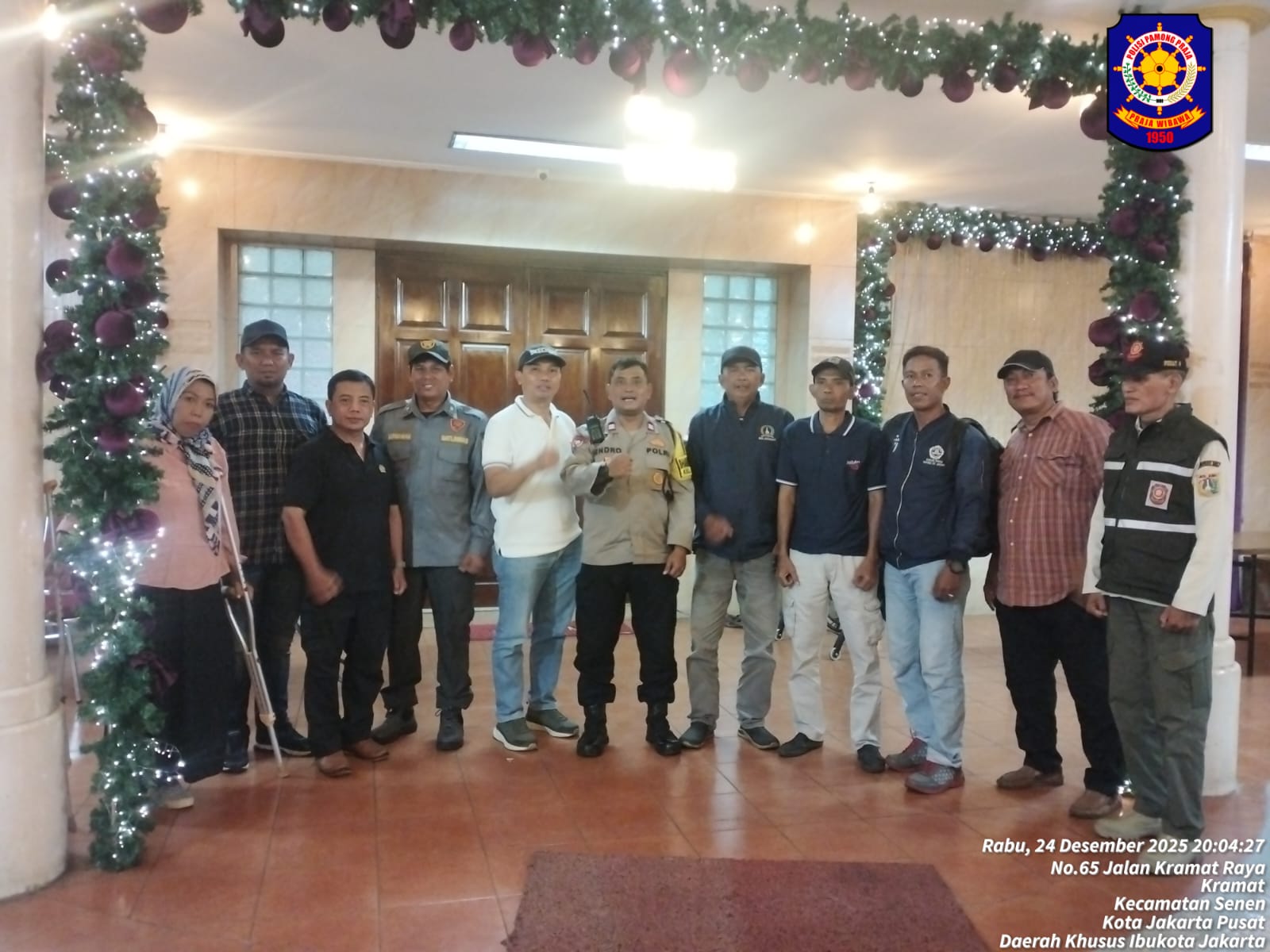 Indonesiakoma.com Jakarta Pusat — Jajaran Polsek Senen melaksanakan pengamanan ibadah malam Natal di Gereja Masehi Injili Sangihe Talaud (GMIST) Kramat, Rabu (24/12/2025) malam. Kegiatan pengamanan dimulai sekitar pukul 19.00 WIB hingga selesai, sebagai bagian dari upaya menjaga keamanan dan kenyamanan umat Kristiani dalam menjalankan ibadah Natal.