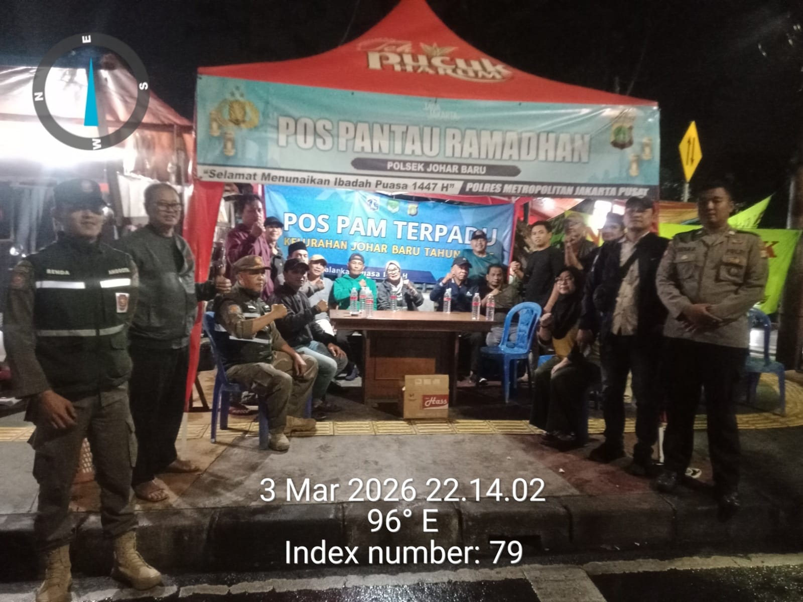 Kegiatan berlangsung di Pos Pantau Jotet, Jl. Kramat Jaya Baru, Kelurahan Johar Baru, Kecamatan Johar Baru, Jakarta Pusat. Pengamanan melibatkan unsur gabungan terdiri dari Brigadir Imam Azis (Intel), Briptu Deka Kurniawan (Samapta), Satpol PP, FKDM, PPSU, serta pengurus RT dan RW 02.