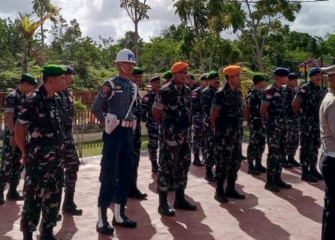 Prajurit Lanal Bintan Ikuti Apel Gelar Pasukan Operasi Keselamatan Seligi 2025 Polres Bintan