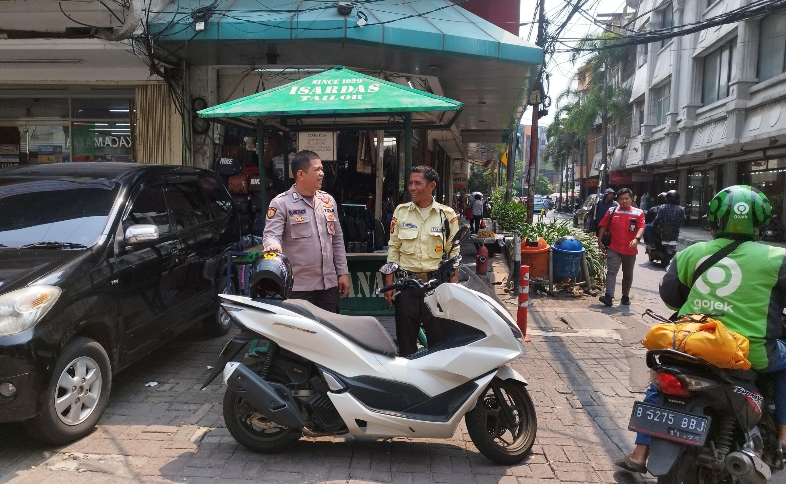 Indonesiakoma.com Jakarta Pusat – Unit Sabhara Polsek Sawah Besar Bripka Deni Setiadi dan anggota lainnya melaksanakan kegiatan patroli dialogis di komplek pertokoan Pasar Baru, Jl. Pintu Air Raya RW 002, kelurahan Pasar Baru Sawah Besar Jakarta Pusat. Selasa (14/10/2025) siang