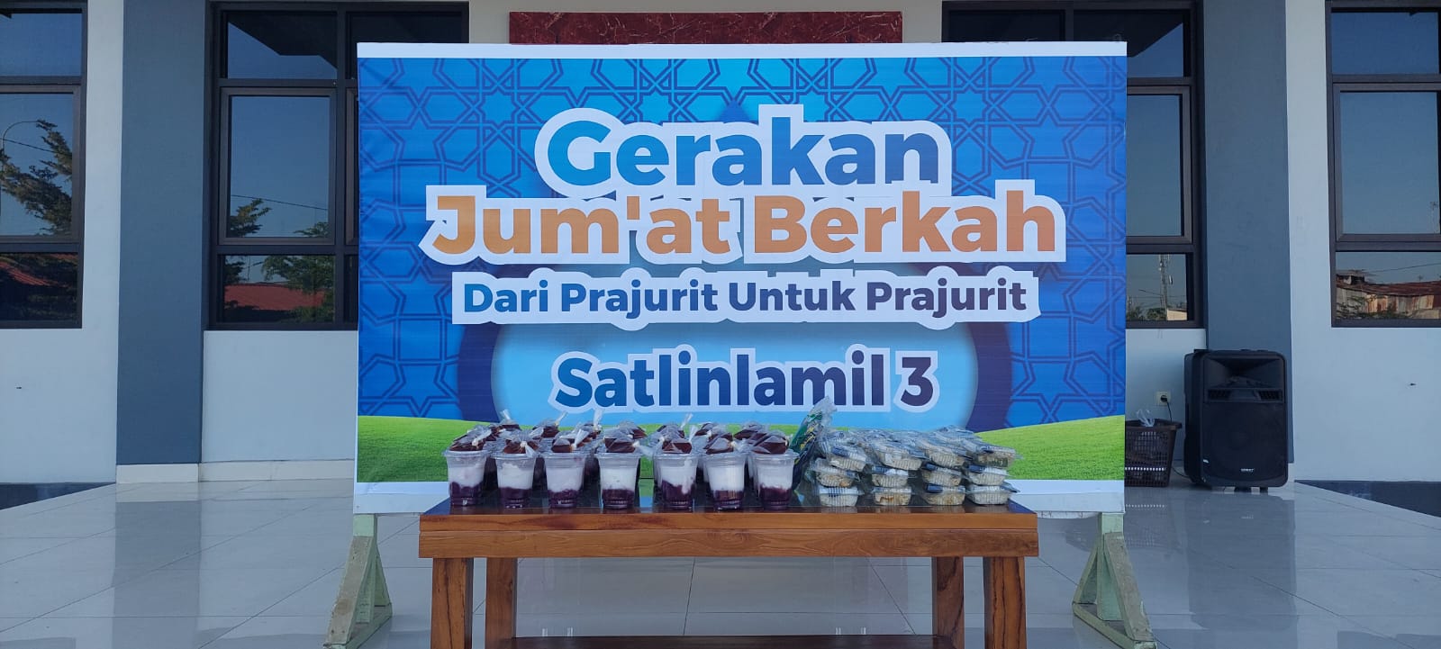 Sebagai langkah awal, kegiatan Program Jumat Berkah dimulai dari lingkungan Satlinlamil 3 yang ditujukan untuk prajurit, dan kedepan kegiatan akan ditingkatkan dengan sasaran masyarakat sekitar yang melintas di depan Mako Satlinlamil 3.