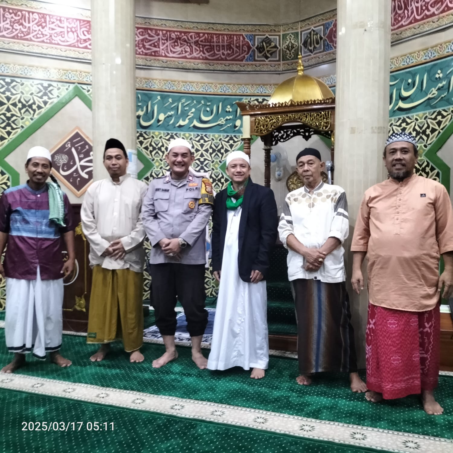 Dalam kesempatan tersebut, AIPTU Robby Danan Jaya melaksanakan sholat subuh berjamaah bersama warga setempat dan diimami oleh Ustadz Dedi Nasution. Seusai sholat, beliau menyampaikan pesan-pesan kamtibmas kepada para jamaah yang hadir.
