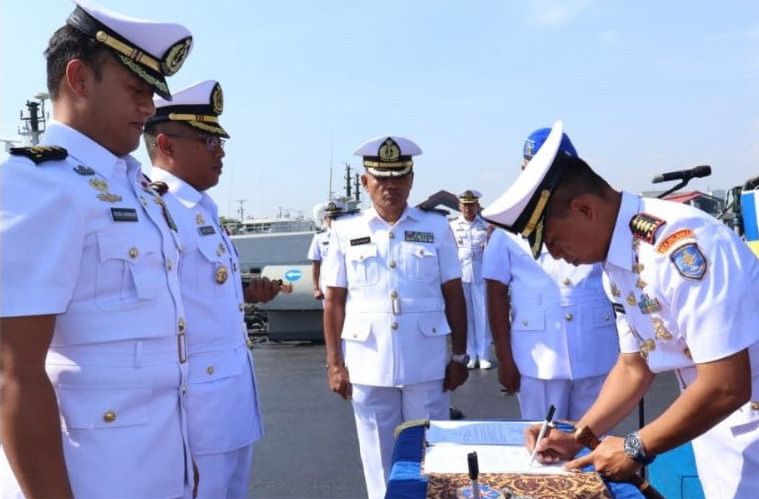 Indonesiakoma.com TNI AL, Surabaya,- Komandan Satuan Lintas Laut Militer (Satlinlamil) 3 Kolonel Laut (P) Sulthon M. Firdaus, M.Tr.Opsla., memimpin Upacara Serah Terima Jabatan Komandan KRI Teluk Amboina-503 dari Letkol Laut (P) Rendra Hariwibowo, S.H., M.Tr.Opsla., kepada Mayor Laut (P) Dwi Bagus Roestiawan, S.H., M.Tr.Opsla., bertempat di Geladak Utama KRI Teluk Amboina-503 yang sandar di Dermaga Ende Selatan, Koarmada II Ujung Surabaya, Kamis (18/9/2025).