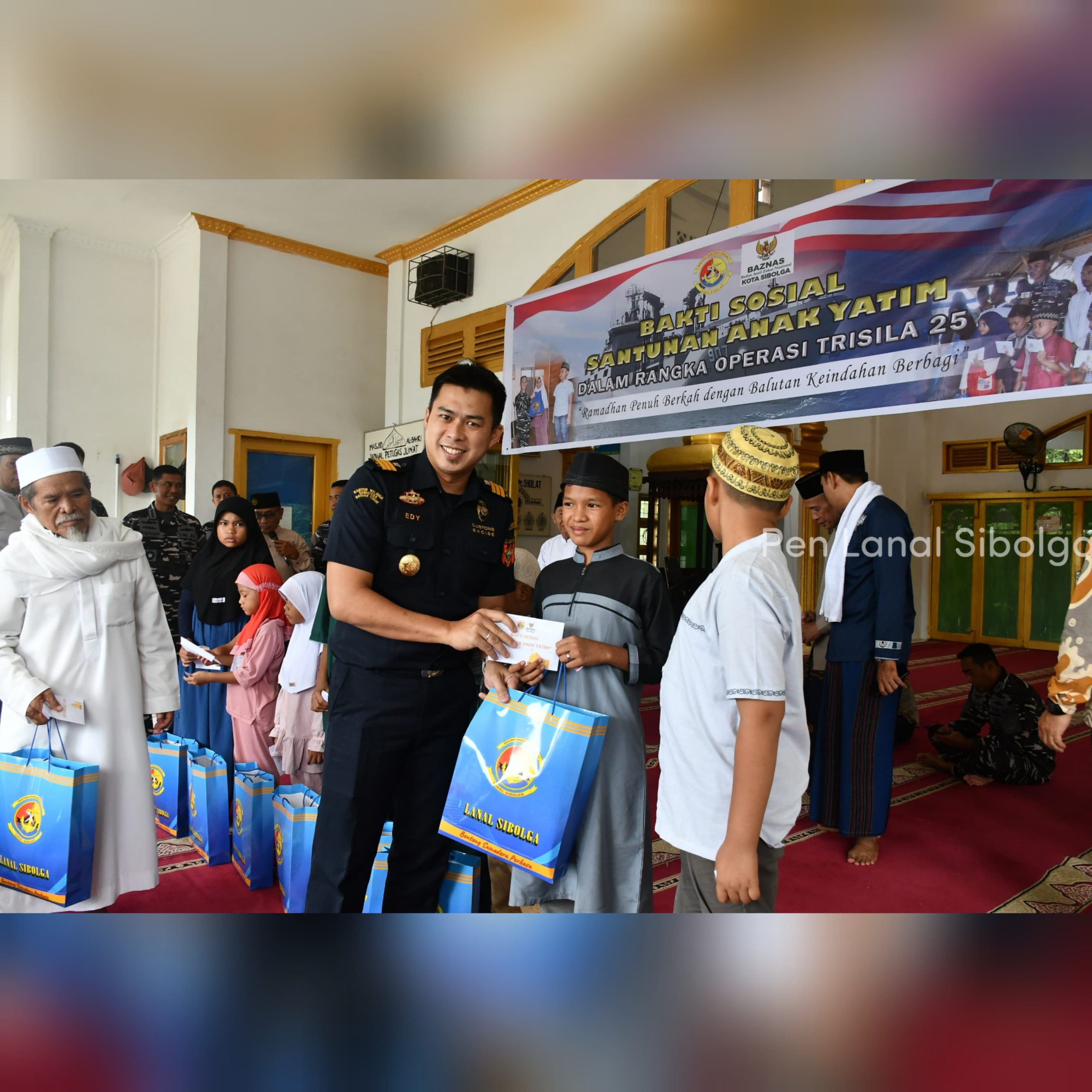 Indonesiakoma.com TNI AL, Sibolga,- Wakil Komandan Satuan Tugas (Wadansatgas) Trisila 2025 Kolonel Laut (P) Yusup Yanto, M.Tr. Hanla., M.M., CTMP., menunjukkan kepedulian sosialnya dengan memberikan santunan kepada 30 anak yatim di Masjid Al-Bahri, Pelabuhan Pelindo, Sibolga Sambas, Kota Sibolga, Jum’at (14/03/2025).